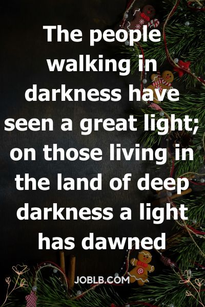 “The people walking in darkness have seen a great light; on those living in the land of deep darkness a light has dawned.” (Isaiah 9:2)
