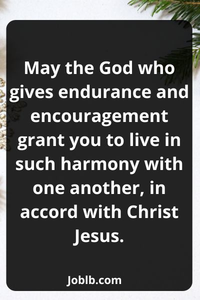 May the God who gives endurance and encouragement grant you to live in such harmony with one another, in accord with Christ Jesus. (Romans 15:5). Lord, bless our home this Christmas. Let Your Spirit of patience and love reign here, binding us together in true peace and mutual understanding as we celebrate Your Son.